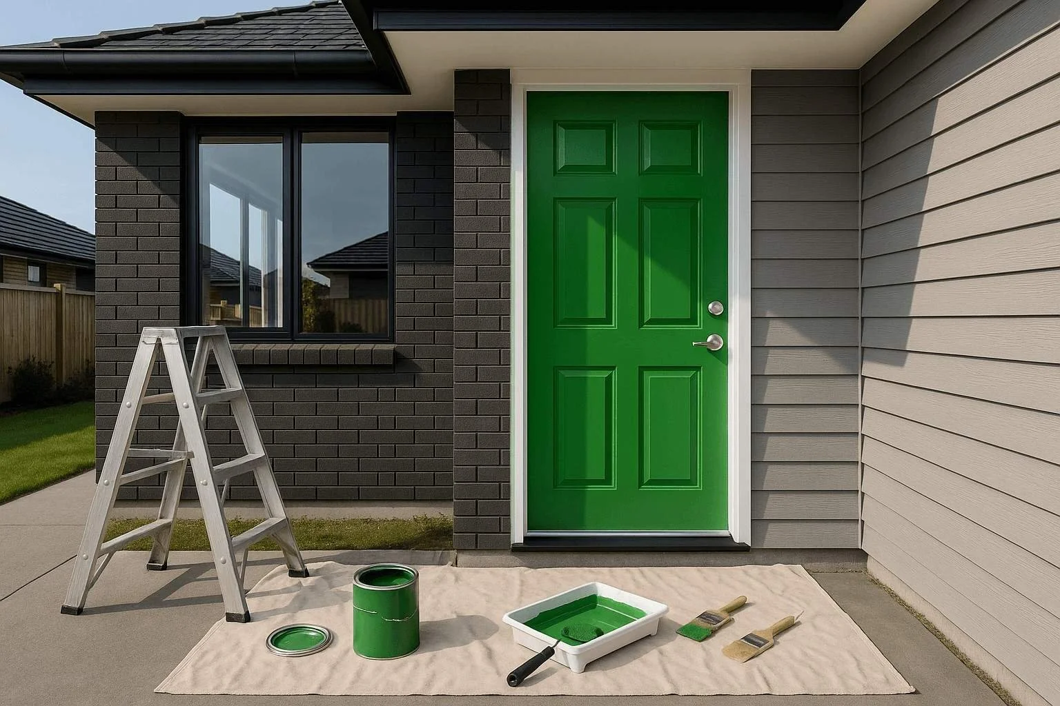 A crucial aspect that often impacts the final result of your painting project is surface preparation. Proper cleaning, sanding, and priming of the door ensure that the paint adheres well and remains durable over time. Start by thoroughly cleaning the door to remove dirt and grease, which can interfere with paint adhesion. After cleaning, sand the door to smooth out any imperfections, creating an ideal surface for the primer. Priming is a step not to be skipped, as it seals the surface and provides a uniform base for the paint. This process is particularly important in the humid climate of Christchurch, where extra moisture can affect the adhesion and durability of the paint.